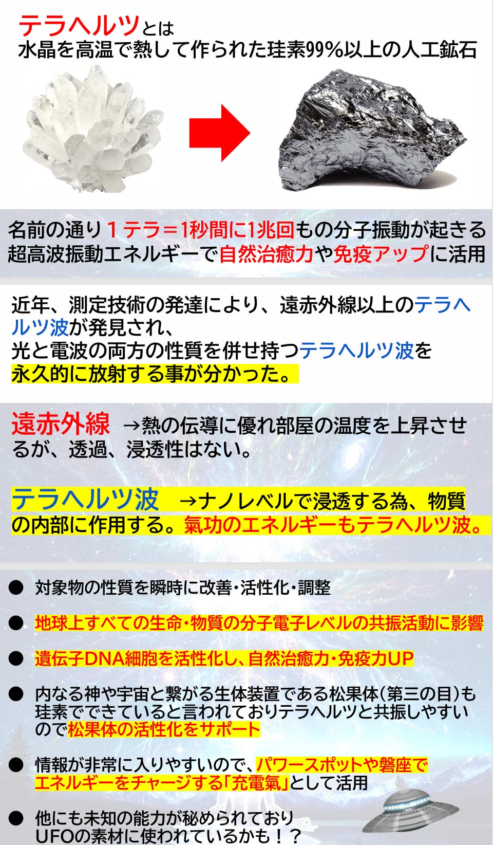 テラヘルツ天耳通を「天・空・地」の位置に装着し、「地」には木火土金水を象徴するテラヘルツ五芒星が添えられることにより、「天空地✦木火土金水」の言霊パワーによる高エネルギー場が形成されます。